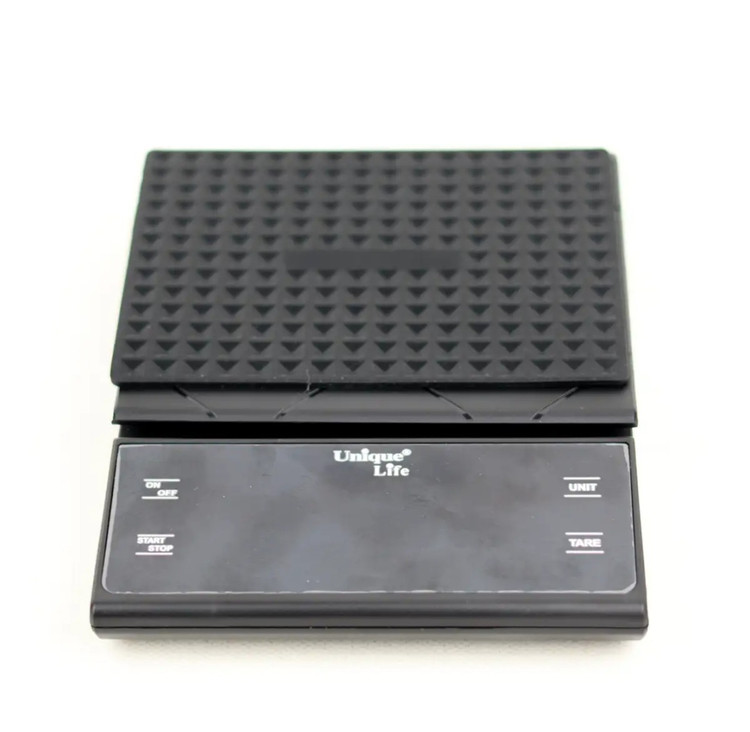 ترازو بسیار دقیق یونیک لایف (لمسی) دوستان چه شما مبتدی باشید و چه حرفه ای، برای اینکه عصاره گیری آیده آل و استانداردی رو داشته باشید باید کنار دستگاهتون یگ عدد ترازو مخصوص قهوه داشته باشید.. که هم بتونید میزان سابه قهوه رو اندازی گیری کنید و هم زمان عصاره گیری رو. ما روی ترازو هامون یه تخفیف خیلی ویژه گذاشتیم؛ پیشنهاد میکنم استفاده کنید. این مدل ترازو یونیک لایف دقت بسیار بالایی داره و از ۰.۵ گرم تا ۳ کیلو رو میتونه برای شما اندازه گیری کنه. علاوه بر این؛ این آسیاب تایمر دار هستش و شما میتونید مقدار زمان عصاره گیری رو مشخص کنید. صفحه نمایش لمسی، پد لرزه گیر و طراحی زیبا از دیگر مشخصات این ترازو هستش. این ترازو با سه عدد باطری نیم قلمی کار میکند