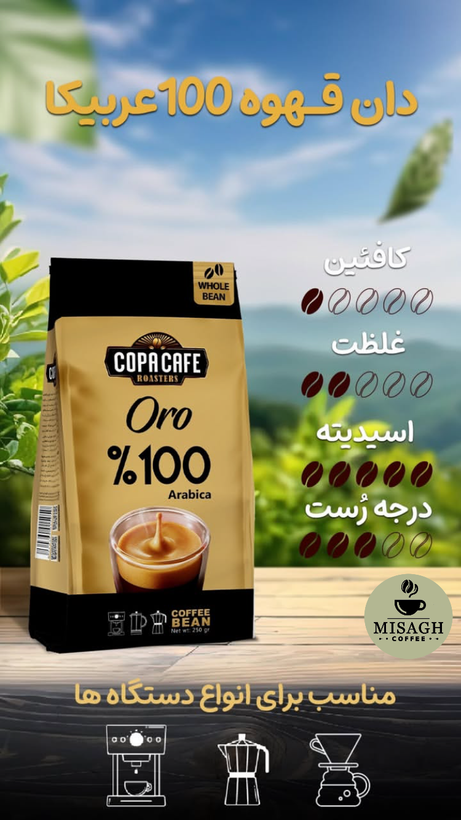 دانه قهوه 250 گرم ORO 100% عربیکا کوپا